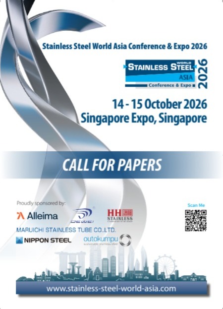 The Stainless Steel World Asia 2026 (14 & 15 october 2026, Singapore EXPO, Singapore) invites technical presentations from experts across the stainless steel sector. Whether your expertise lies in design, manufacture or new technologies, this is your platform to share knowledge with the global stainles steel community.
